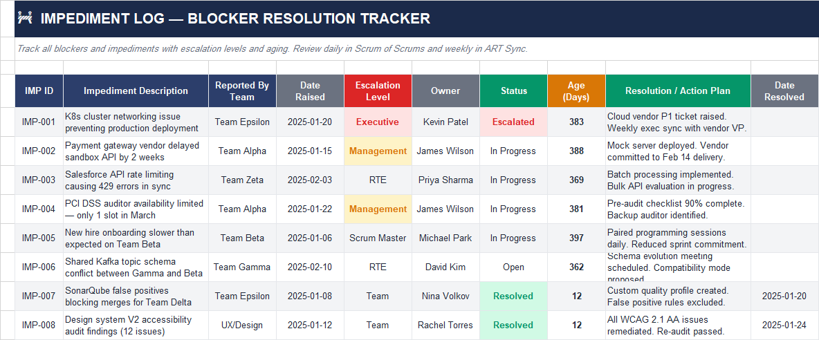 Impediment Log — Remove Blockers Quickly