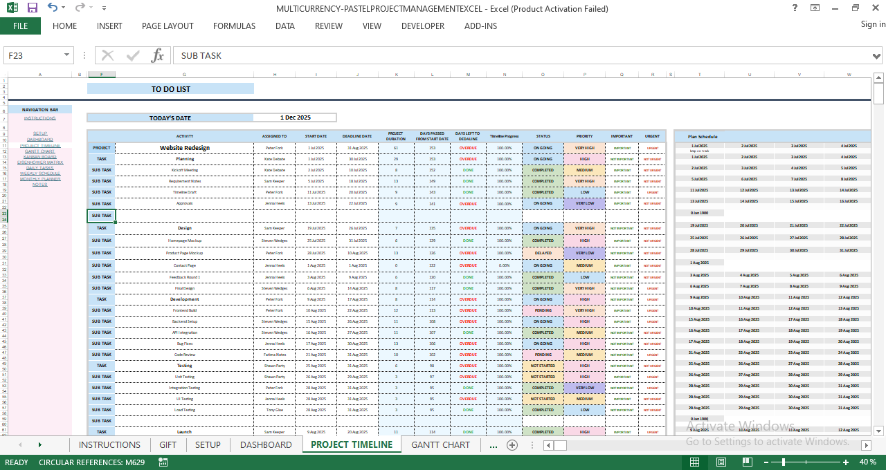 Whether you're managing tasks for a small team or coordinating multiple projects at once, this spreadsheet gives you a complete project command center with automated views, visual dashboards, and intuitive layouts.