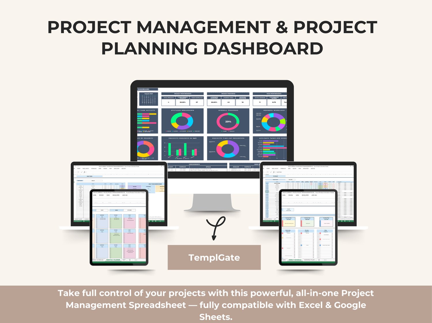 Take full control of your projects with this powerful, all-in-one Project Management Spreadsheet — fully compatible with Excel & Google Sheets.