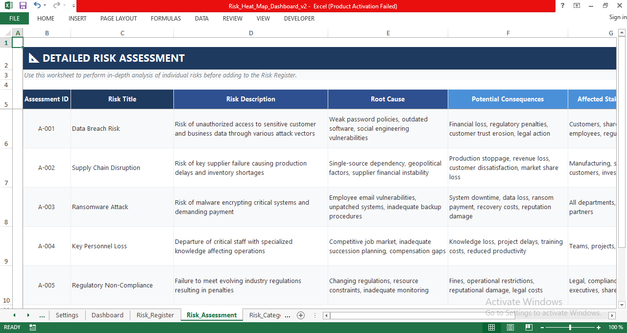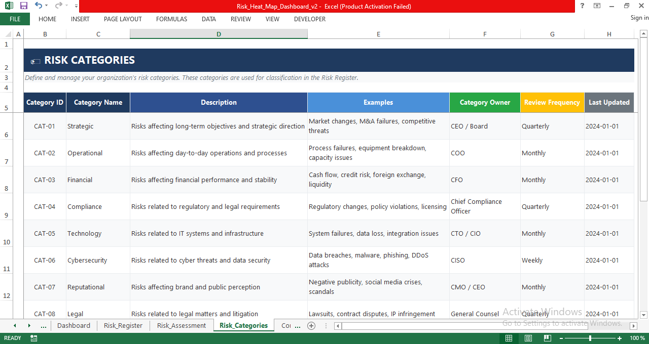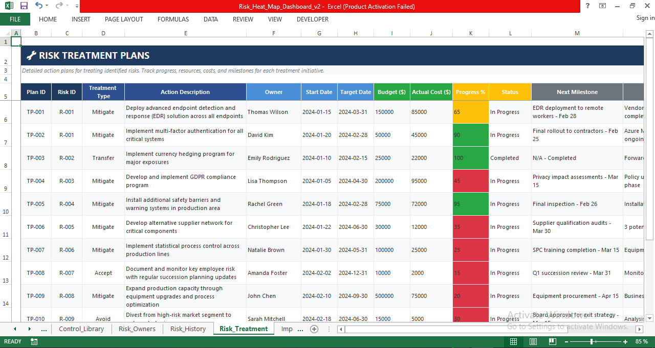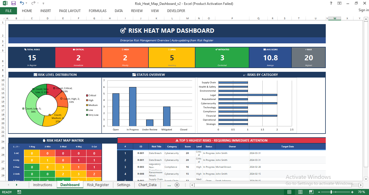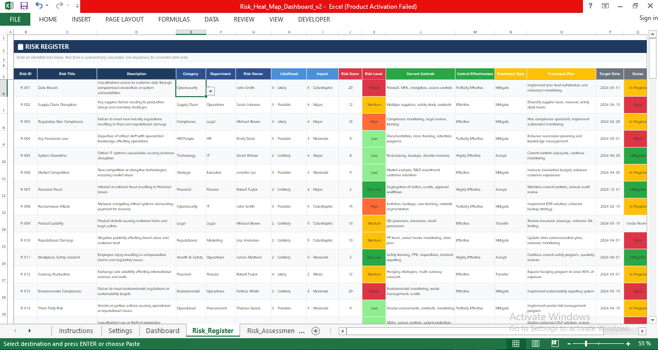 The Risk Heat Map Dashboard Excel Template is not just a visualization tool—it is a complete enterprise risk management system. It enables organizations to move from reactive risk tracking to proactive, data-driven risk governance, with full visibility, accountability, and control.