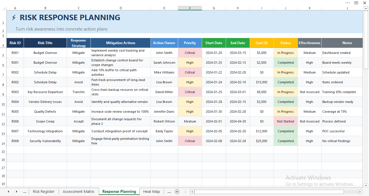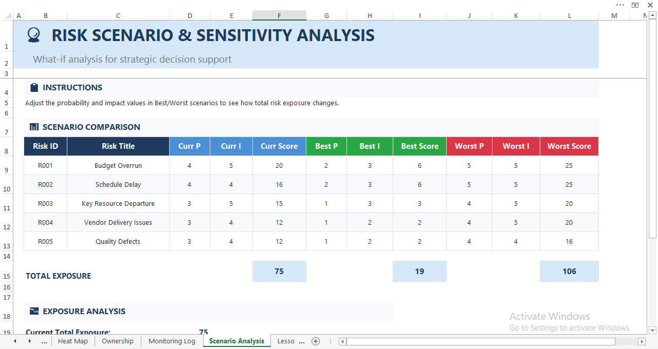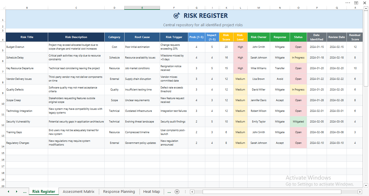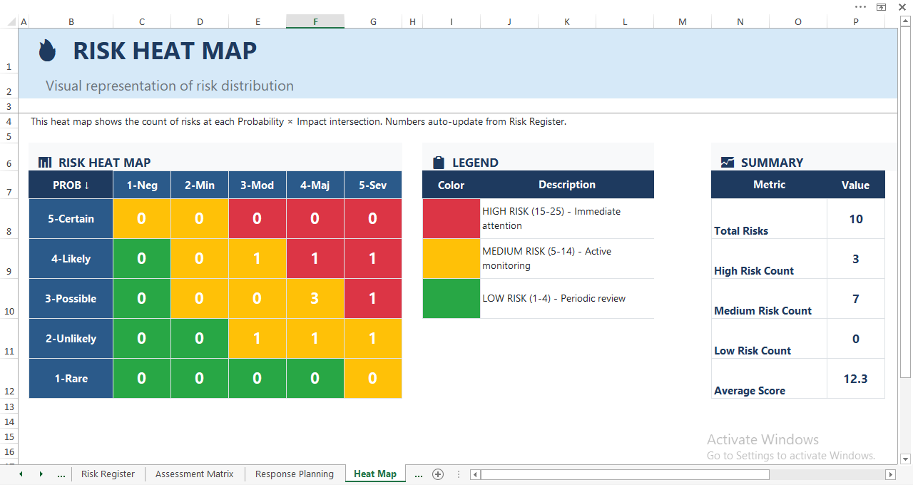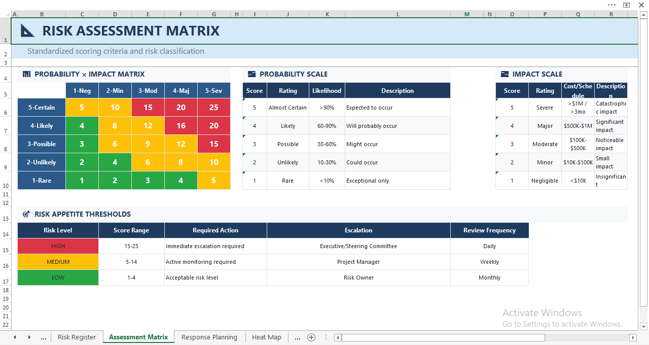 Whether you manage single projects, large programs, or portfolios, this template scales to match your risk complexity.