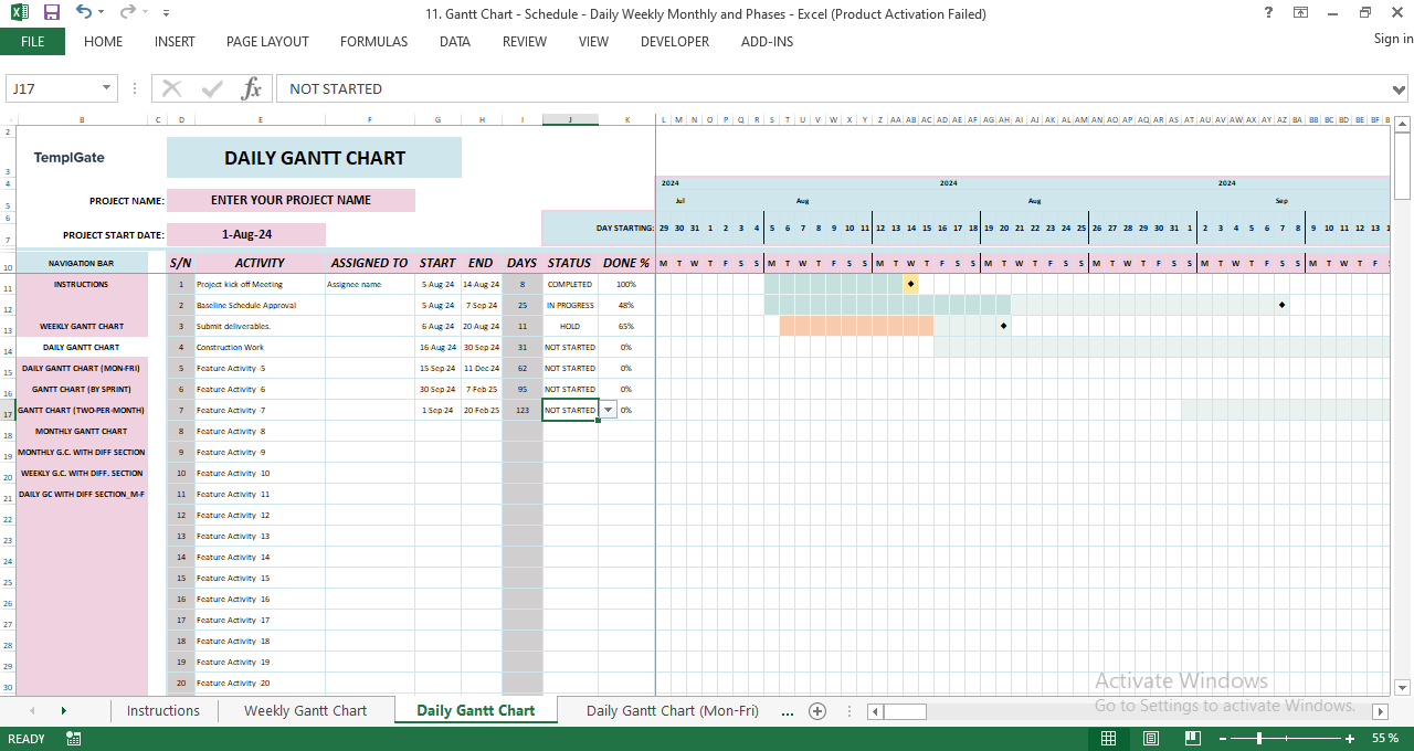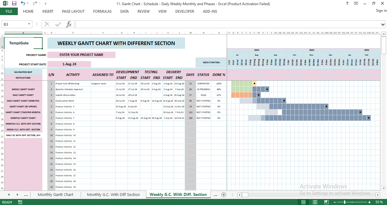 This powerful spreadsheet isn’t just a chart — it’s a full project scheduling system designed to help you plan, monitor, and deliver projects with confidence. Whether you manage simple tasks or multi-phase programs, this template gives you everything you need in one organized, automated file.