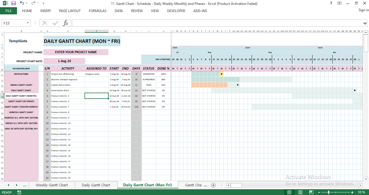 - Monday-to-Friday Gantt versions