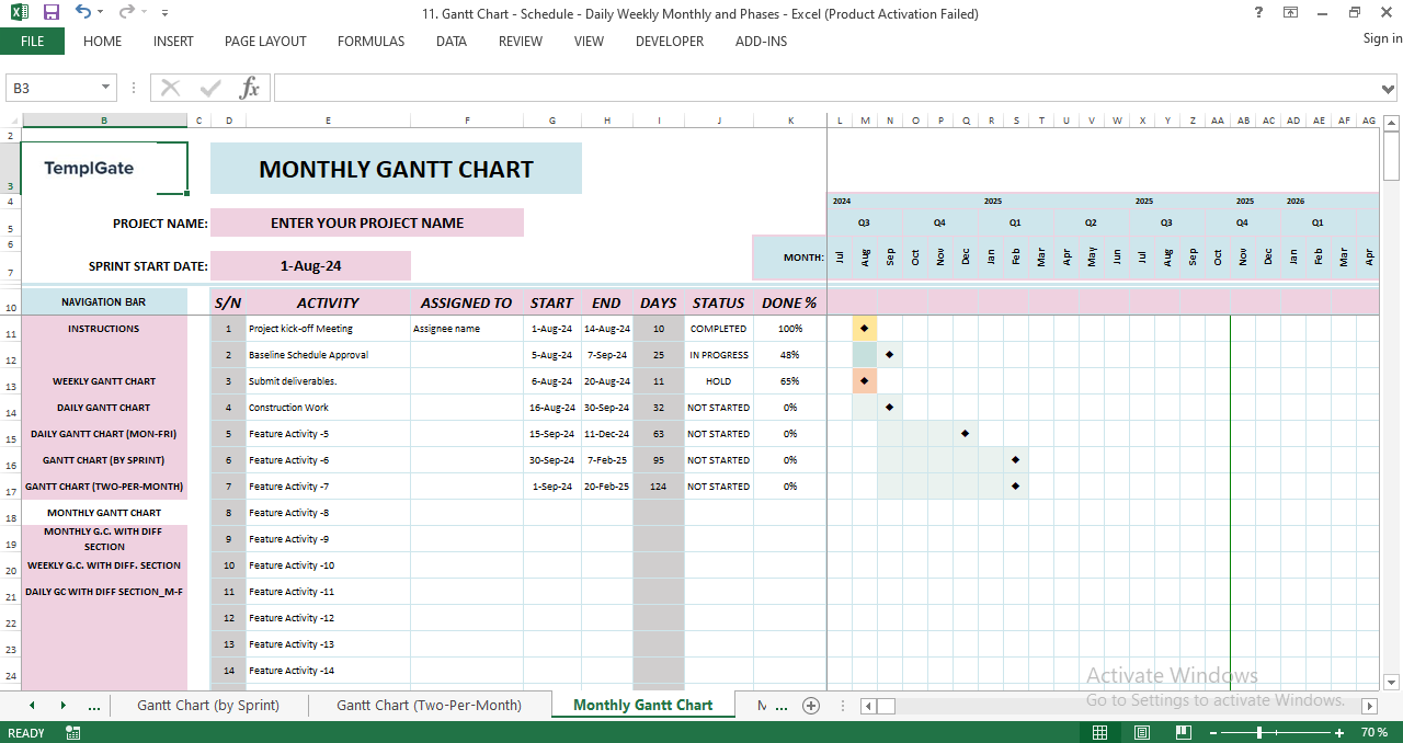 6. MONTHLY GANTT CHART