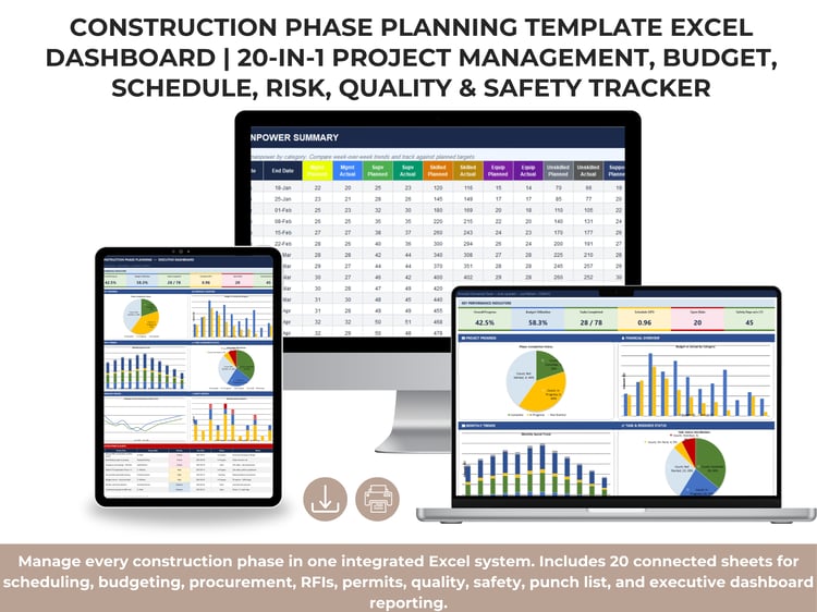 The Delay Analysis & Root Cause Tracker is a professional, all-in-one Excel template designed to help project managers, PMOs, construction teams, engineers, and executives systematically track, analyze, resolve, and prevent project delays.