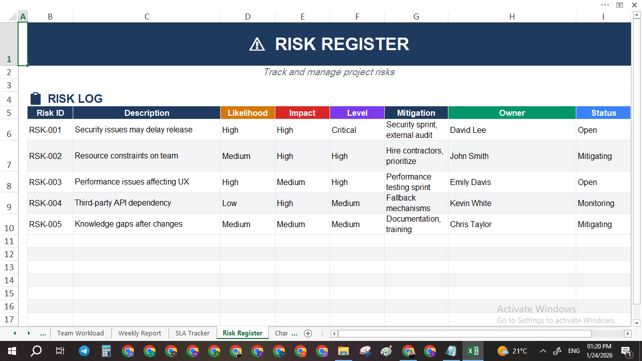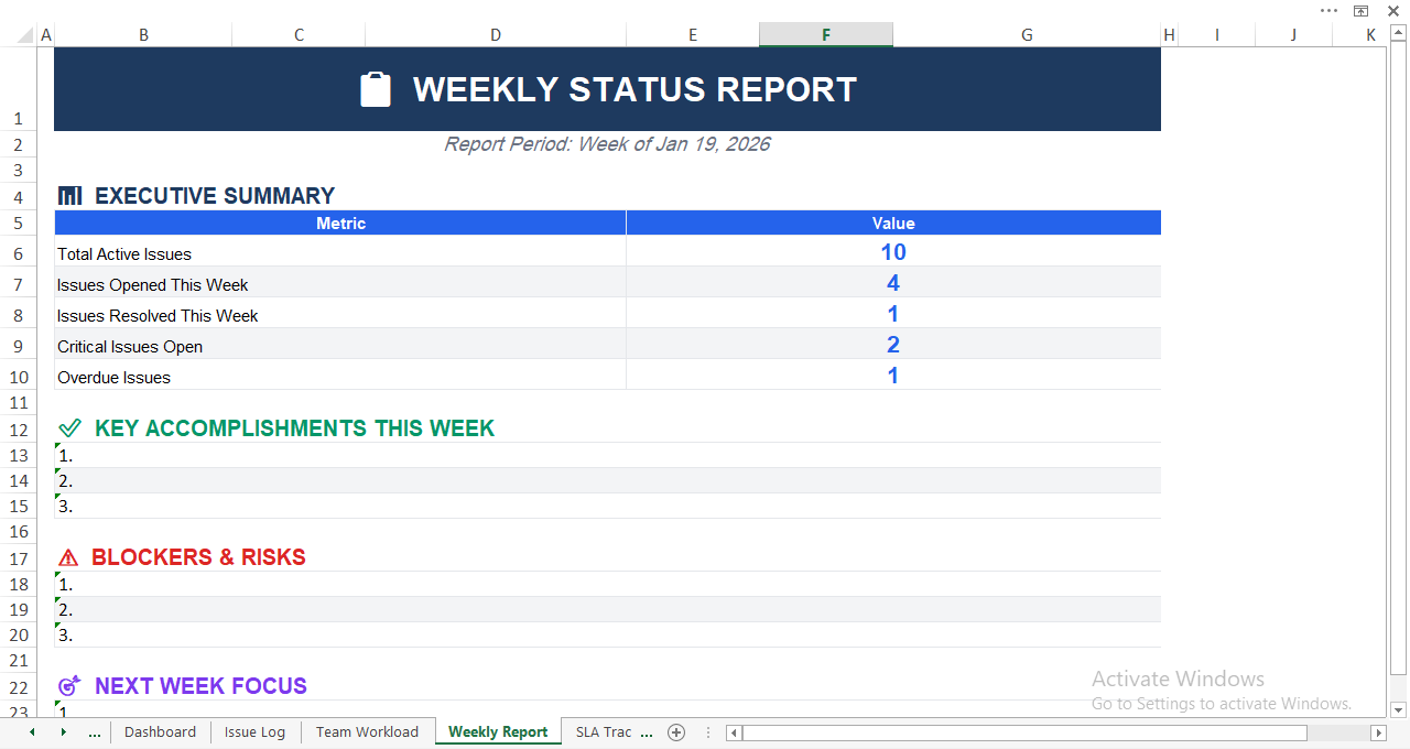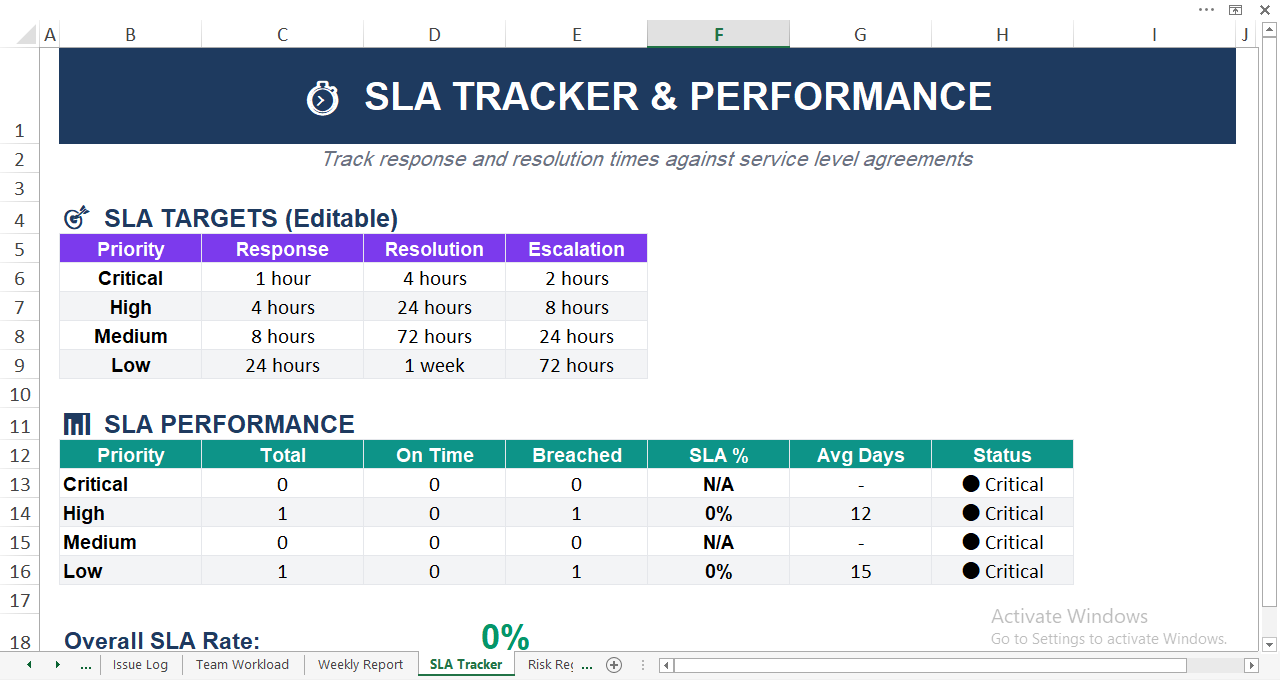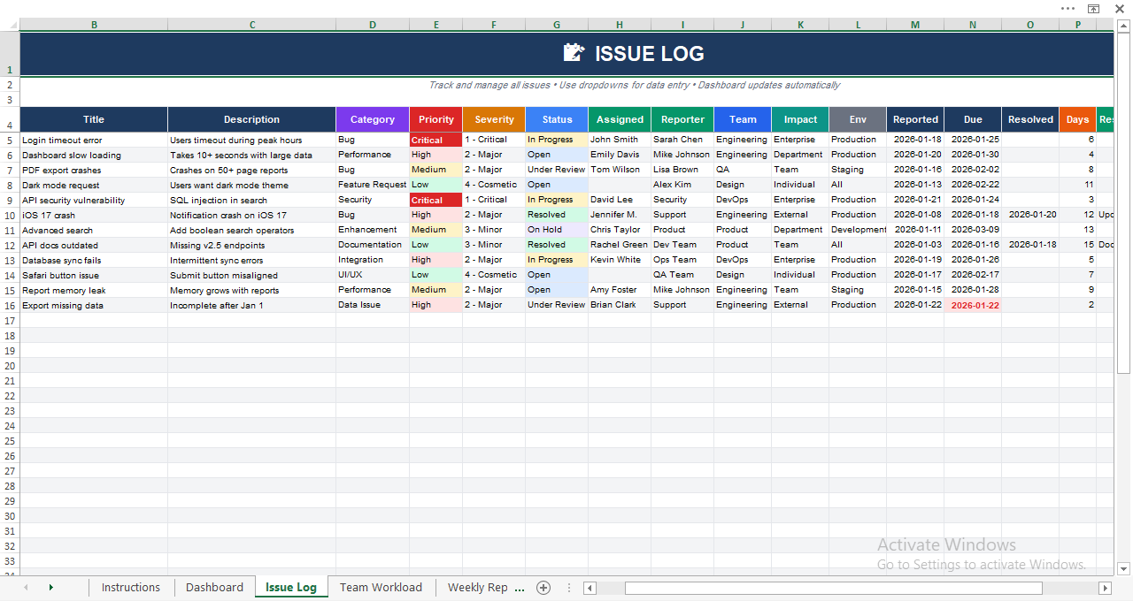 If you manage issues, risks, deadlines, SLAs, or team accountability, this template is built for you.